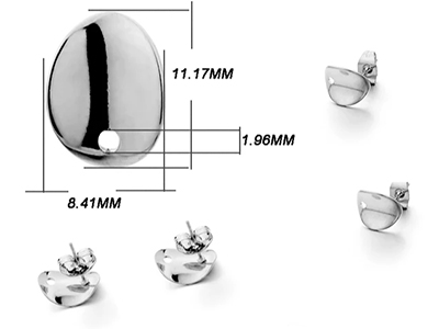 Швензы пусеты, нержавейка с держателем для подвесок, ОВАЛ, размер 11х8 мм, пара