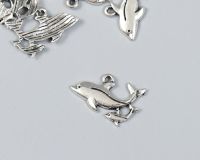 Подвеска ДЕЛЬФИН с детенышем, цвет никель,1 шт